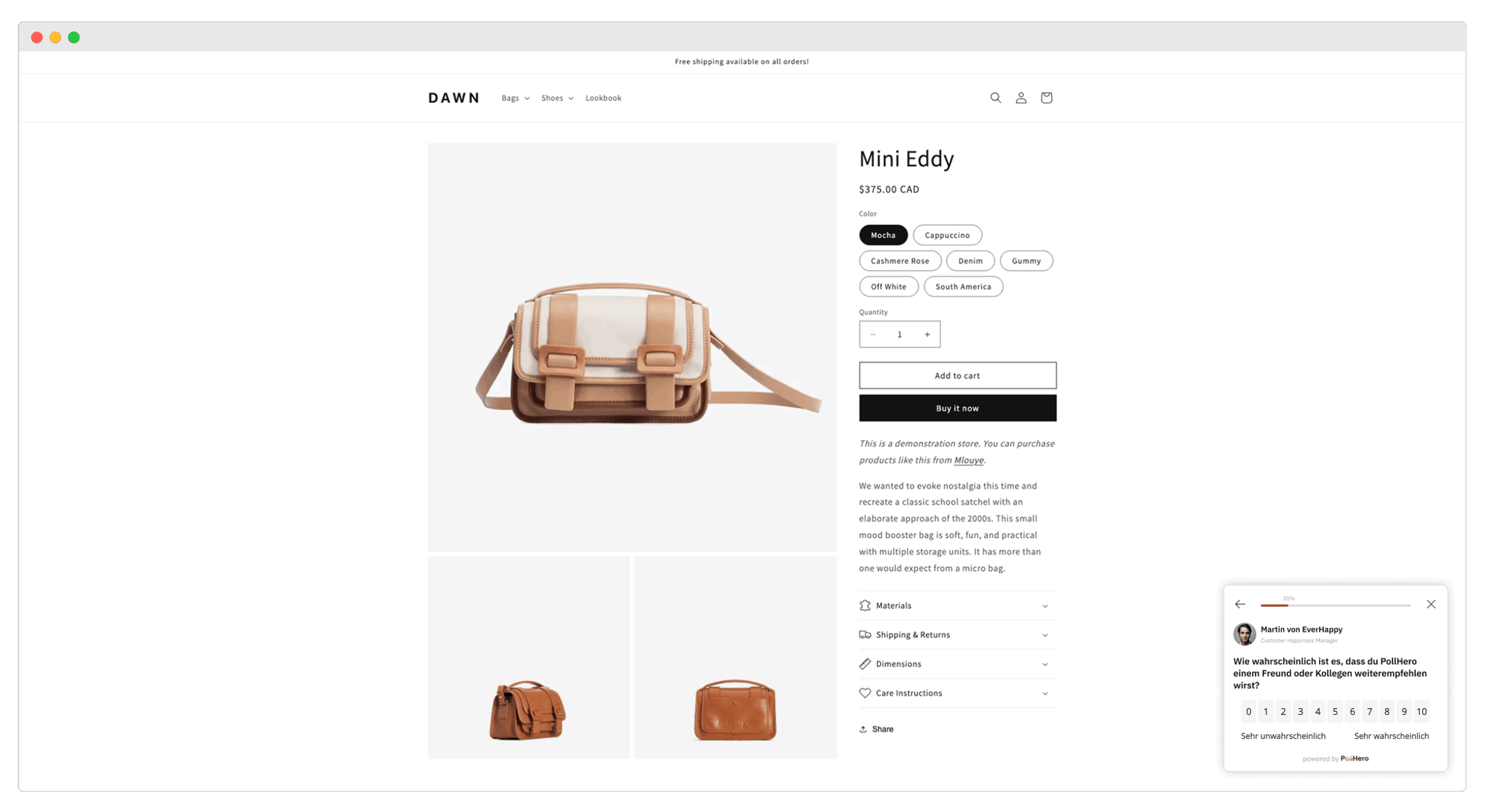 Mit PollHero kannst du Conversion-Probleme identifizieren, Post Purchase Surveys durchführen, herausfinden, wie zufrieden deine Kundschaft mit dem Bestellprozess ist und vieles mehr.