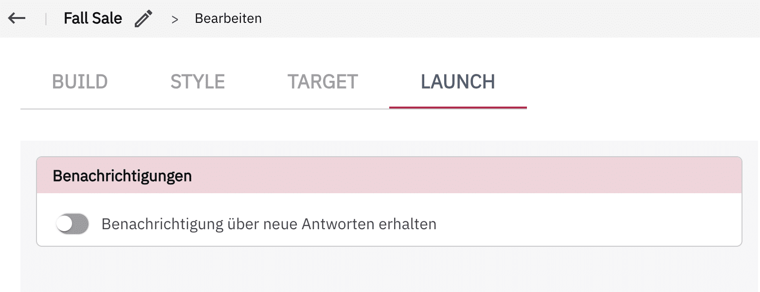 Im Launch-Tab der Umfrageerstellung kannst du einstellen, dass du über neue Antworten benachrichtigt wirst.