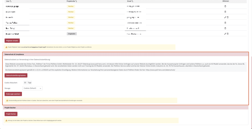 In PollHero hast du die Möglichkeit, die Einstellungen zu Cookies und localStorage selber vor zu nehmen und anzupassen.
