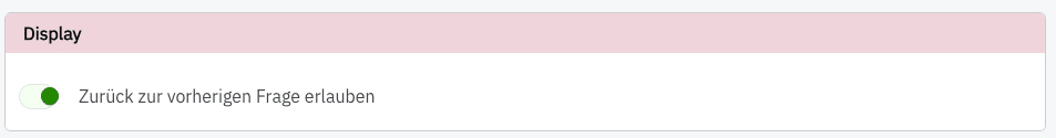 Zurück zur vorherigen Frage erlauben: Du kannst hier auswählen, ob deine Kunden zu vorherigen Fragen zurückkehren können oder nicht. Wenn ja, siehst du im oberen linken Teil der Umfrage einen Pfeil, der nach links zeigt.
