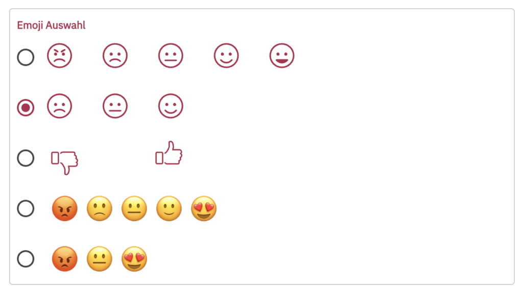 Mit Hilfe von Smileys oder “Daumen hoch”/”Daumen runter” kann deine Kundschaft schnell ihre Meinung abgeben und bewerten, ob und wie gut/schlecht ihnen ein Feature deiner Website oder deines Produkts gefällt.