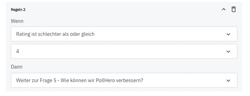 Jetzt kann ich auswählen, dass alle Antworten mit 4 Sternen oder weniger zu Frage 5 geleitet werden: