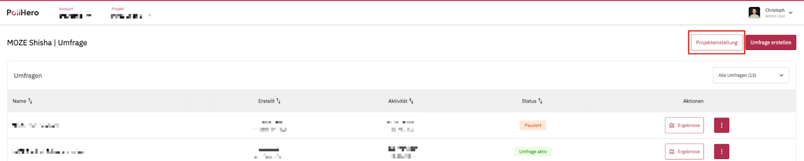 Du kannst ein gesamtes Projekt inklusive aller Umfragen löschen.