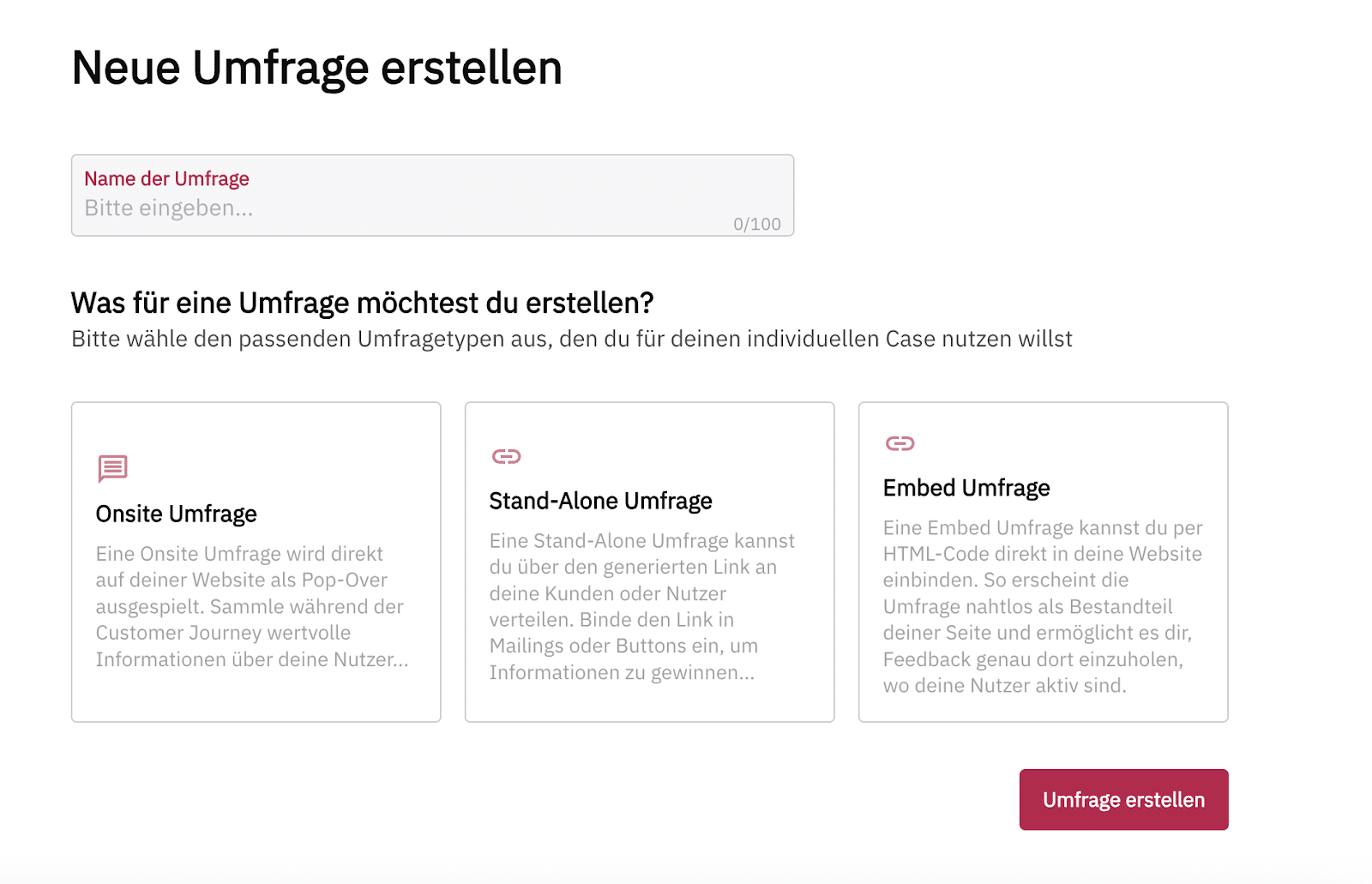 Erfahre mehr zur Erstellung der unterschiedlichen Umfragearten: