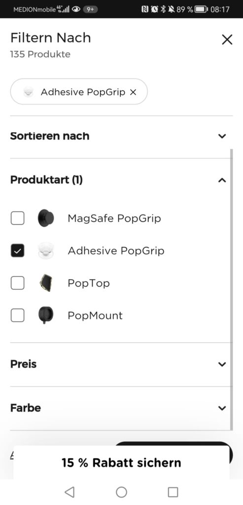 Eine persönliche Anekdote: Seit Jahren habe ich PopSockets an meinem Handy, da mein Smartphone relativ groß ist und ich den zusätzlichen Halt schätze. Bisher habe ich die handlichen Hilfen immer bei Saturn bzw. MediaMarkt gekauft. Leider führt die Kette PopSockets nicht im Store. Kein Problem, auf in den PopSockets Online Shop. Dabei wollte ich gezielt nach der Produktart filtern. Aufgrund des weihnachtlichen Rabatts konnte ich den Filter aber nicht anwenden und habe den Shop sehr genervt wieder geschlossen, um letztendlich auf einer anderen Seite einzukaufen.