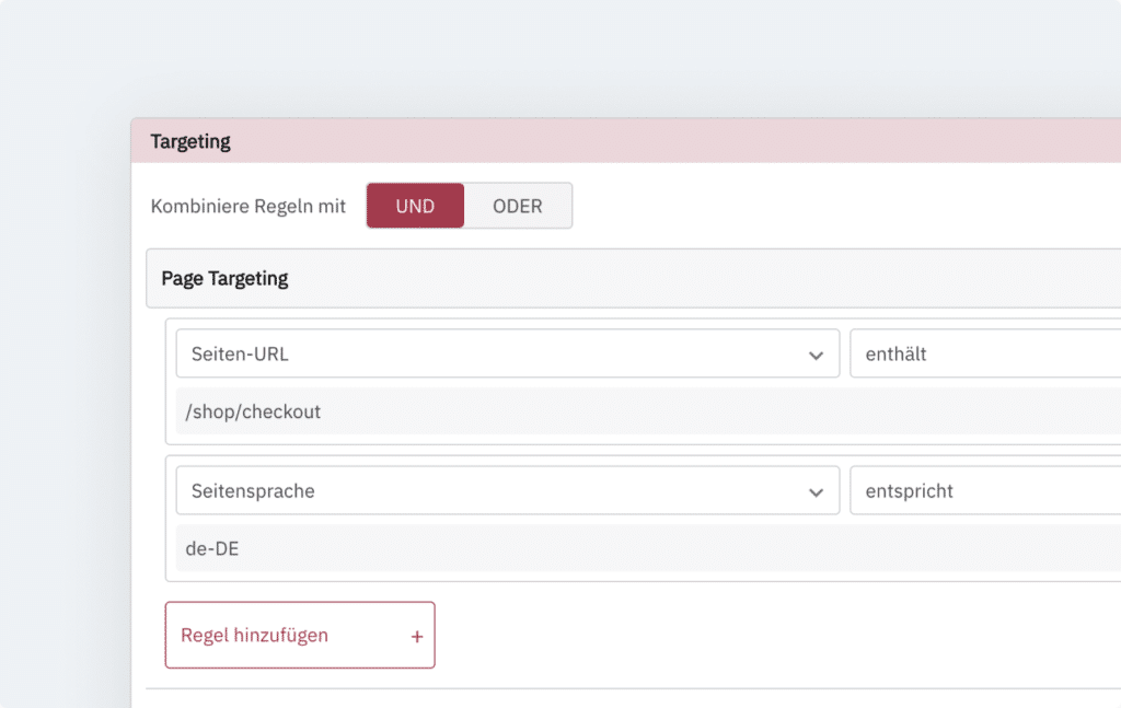 Personalisierbares Targeting auf Customer Attributes, Einzelseiten oder so individuell, wie dein Shop es braucht: im Handumdrehen Targeting erstellt & Umfrage live geschaltet.